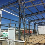 This 50’ wide by 93’ long building addition to an existing masonry structure was designed with the two separate building deflections in mind. Ferro’s contract in this case was for the supply and install of the pre-engineered building. The building had openings in the end wall (partial opening), and the sidewall (full opening) to accommodate two separate structures. These two openings were flashed and sealed to tie the buildings together both aesthetically and functionally. Ferro also supplied pre-assembled man doors for the structure including the openings for one overhead door.
